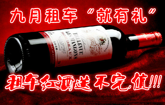 為了感謝先新老客戶對本公司的關照和支持,凡在本公司租賃商務車的客戶即可享受“大禮品”價值298元進口紅酒一瓶,優(yōu)先報名者禮品不斷,送不完的禮品等你哦??!