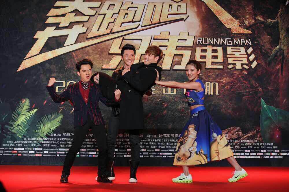 大電影“奔跑吧,兄弟”宣傳活動現(xiàn)場,鄭凱海報。(北京一路領先汽車租賃公司)圖